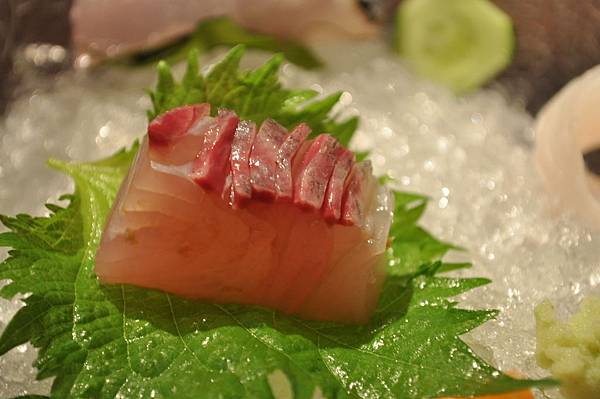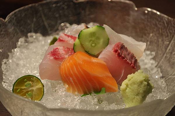 生魚片有白魽、紅魽、鮭魚和一種不知名的白肉魚,共7-8塊。