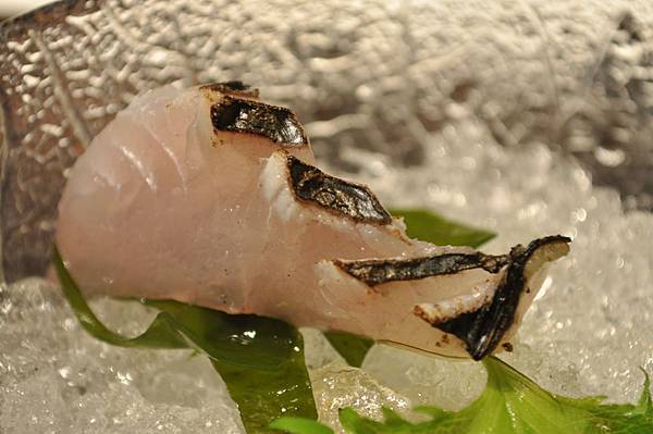 第一次吃到這樣的作法,白魽上層微微炙燒再以精細刀工切開,脂肪豐富卻像白肉魚一樣清香。