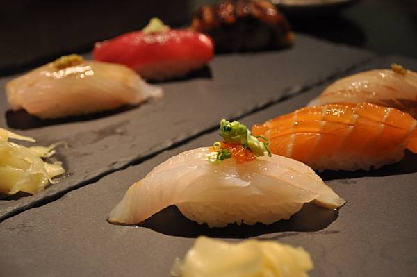 阿頓點的是握壽司套餐,有剝皮魚、鮭魚、紅魽、鮪魚、星鰻等等