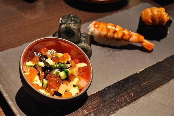 另外有海膽、明蝦、瓠瓜捲等等,最後附上一碗小小的散壽司,共12道~